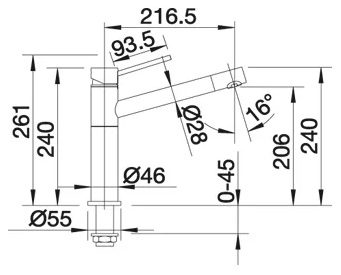 | Излив | длина 217 мм, высота 206 мм |
