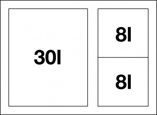 | Кол-во контейнеров | 3, 2х8 л, 1х30 л |