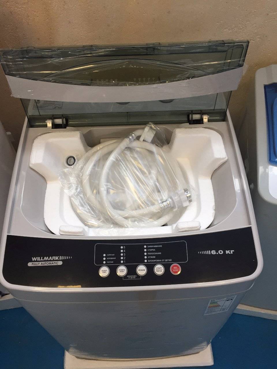 Компактная стиральная машина WILLMARK WMS-60PК с вертикальной загрузкой белья до 6 кг. Можно догружать белье во время стирки. Дверца при открытии не требует дополнительного пространства как у машинок с фронтальной загрузкой