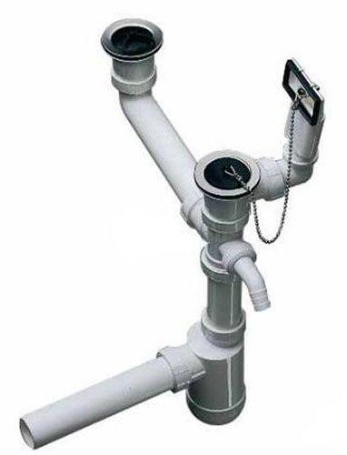 Отводная арматура двойная 1 1/2"с переливом и сифоном, с близко посажеными сливами