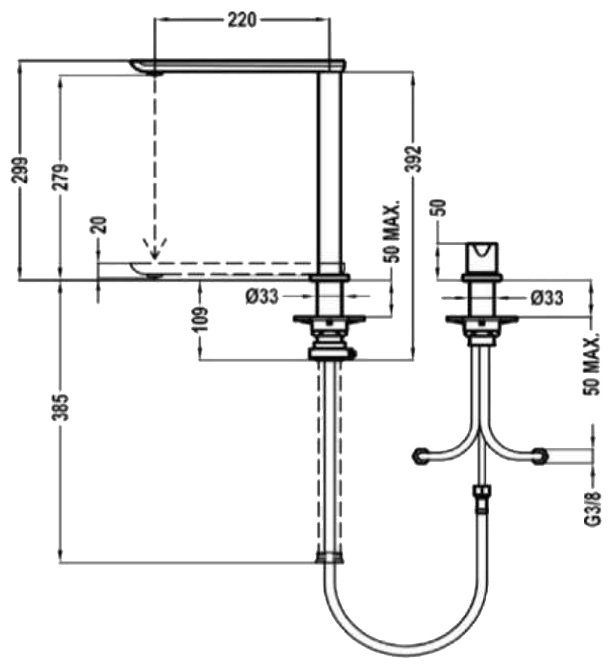 | Излив | длина 220 мм, высота 279 мм |