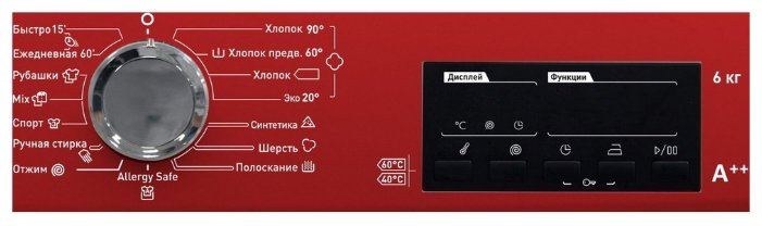| Специальные программы | стирка деликатных тканей, экономичная стирка, предотвращение сминания, стирка спортивной одежды, программа стирки смешанных тканей, быстрая стирка, предварительная стирка |