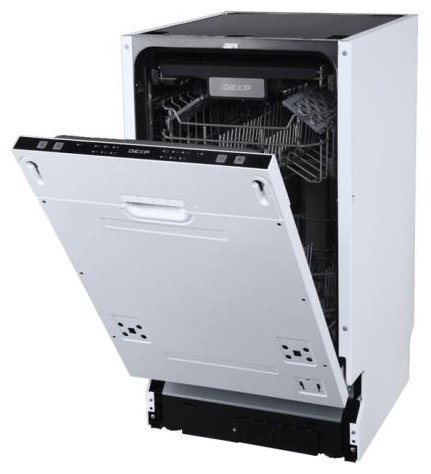 Освободите себя от столь малоприятного занятия как мытье посуды. Поберегите свои руки и сэкономьте время со встраиваемой посудомоечной машиной DEXP M10C6PB. До 10 комплектов посуды одновременно вы можете поместить в машину, при этом расходы воды за цикл невелик – всего 9 л. Конденсационная сушка позволит извлечь посуду идеально сухой. Из шести программ мойки можете выбрать оптимальную: экспресс, стандартную, экономичную. Кроме того, для хрупкой посуды, например, для бокалов, также есть своя программа. Либо можете использовать режим половинной нагрузки, чтобы не ждать, когда накопится гора грязной посуды. Для столовых приборов имеется отдельный лоток. DEXP M10C6PB обладает полной защитой от протечек. Индикация делает использование машинки более комфортным: так вы узнаете о наличии соли, ополаскивателя. Для удобства можете использовать функцию отложенного старта.