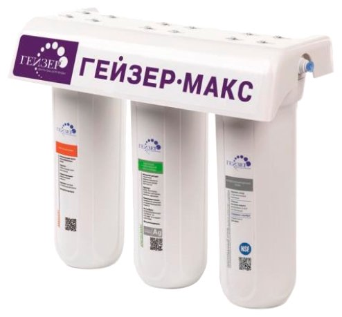 В функциональном водоочистителе ГЕЙЗЕР Макс предусмотрена трехступенчатая очистка воды, что позволяет добиться требуемых показателей воды. Он способен функционировать при давлении в водопроводе до 7 атмосфер и температуре воды от 4 до 40 градусов. Скорость фильтрования после подключения составляет 1,5 литра в минуту. Монтаж системы ведется в пространство под мойку.