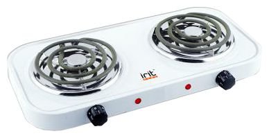 Белая электрическая плитка Irit IR-8120 с механическим управлением оснащена двумя поворотными переключателями и индикатором работы. Плитка имеет две конфорки, позволяющие готовить сразу несколько блюд. Максимальная потребляемая мощность Irit IR-8120 составляет 2000 Вт.