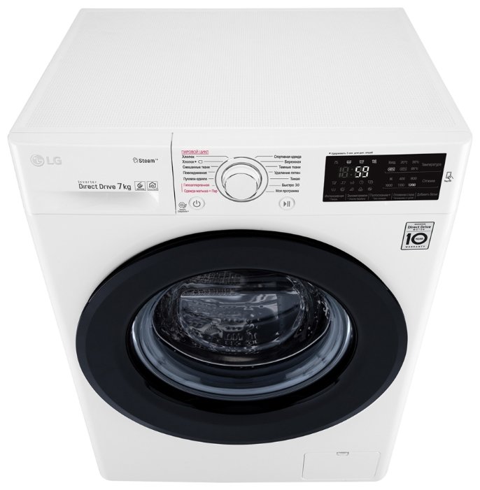 | Специальные программы | стирка деликатных тканей, экономичная стирка, ночной режим, предотвращение сминания, стирка детской одежды, стирка спортивной одежды, стирка пуховых вещей, программа стирки смешанных тканей, супер-полоскание, быстрая стирка, предварительная стирка, программа удаления пятен, подача пара |