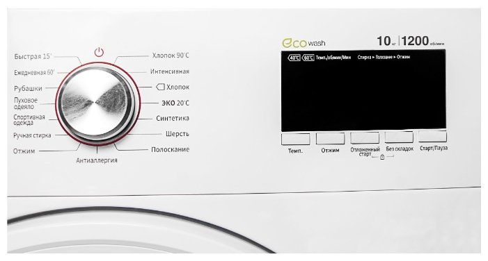 | Специальные программы | экономичная стирка, стирка джинсов, стирка спортивной одежды, стирка пуховых вещей, быстрая стирка, предварительная стирка, программа удаления пятен |