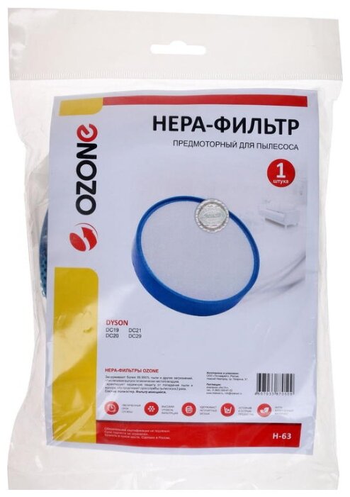 Фильтр OZONE H-63 – сменный аксессуар, который справляется с несколькими поставленными задачами. В частности, его основная функция заключается в максимальной защите моторного фильтра от проникновения загрязнений и пыли.