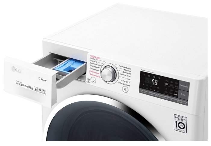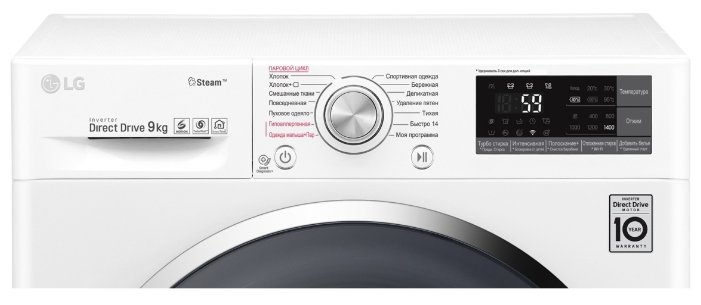 | Специальные программы | стирка деликатных тканей, экономичная стирка, ночной режим, стирка детской одежды, стирка спортивной одежды, стирка пуховых вещей, программа стирки смешанных тканей, супер-полоскание, быстрая стирка, предварительная стирка, программа удаления пятен, подача пара |