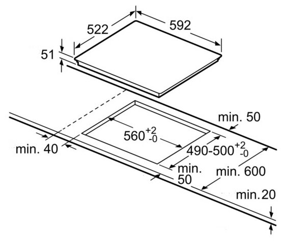 | Размеры для встраивания (ШхГ) | 56 x 49 см |