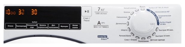 Специальные программыстирка деликатных тканей, экономичная стирка, ночной режим, предотвращение сминания, стирка детской одежды, программа стирки смешанных тканей, супер-полоскание, быстрая стирка, предварительная стирка, программа удаления пятен