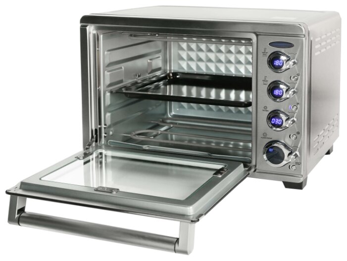 | Комплектация | вертел, решётка, противень, поддон для сбора крошек, держатель для противня/решётки |