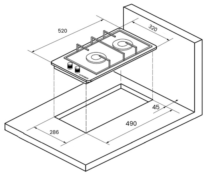 Размеры для встраивания (ШхГ)28.6 x 49 см