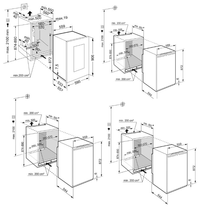 | Особенности | габариты ниши для встраивания каждого прибора (ВхШхГ): 98.4-89х56-57х55-56 см; доводчик двери с системой SoftSystem |