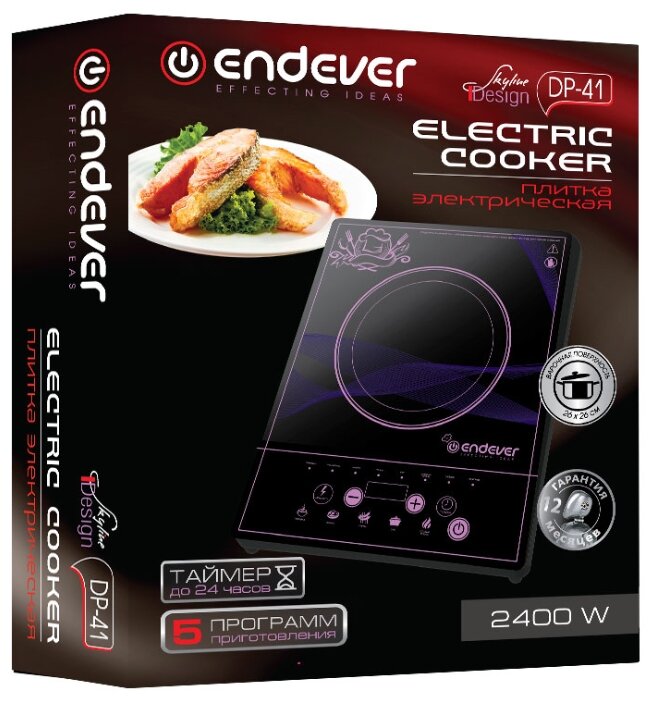 Плитка электрическая Endever Skyline DP-41 выполнена в черной расцветке. Варочная поверхность сделана из стеклокерамики, на ней расположена 1 двухконтурная конфорка. Устройство имеет кнопочный тип управления и оборудовано таймером, который делает использование плитки более удобным. Функция защитного отключения обеспечивает безопасность.
