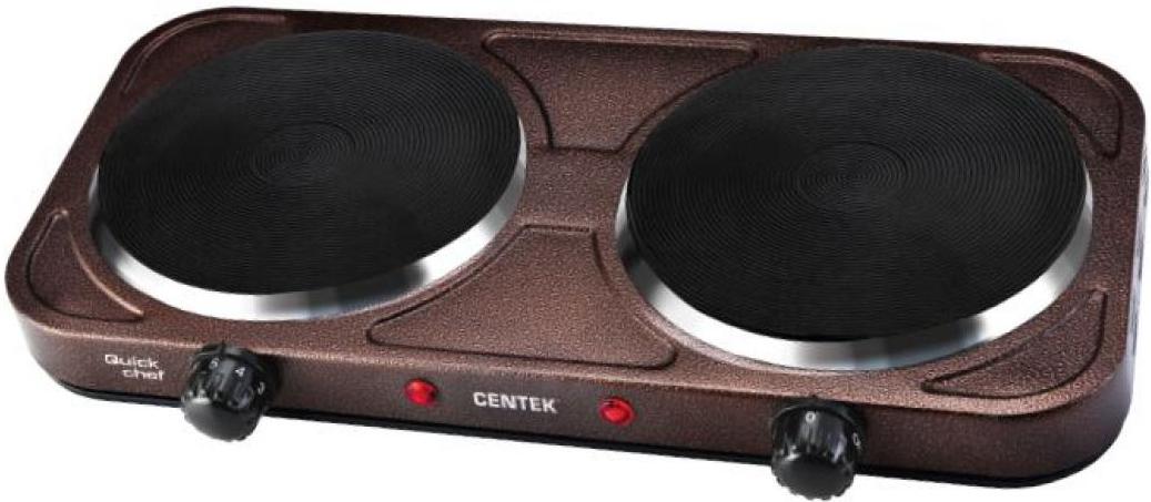 Плитка электрическая Centek CT-1507 имеет коричневую эмалированную поверхность, которая легко очищается, и 2 плоские чугунные конфорки диаметром 15.5 см. За счет того, что модель обладает 2 конфорками, в ней можно готовить сразу два блюда, что очень удобно. Максимальная потребляемая прибором мощность составляет 2 2 кВт.