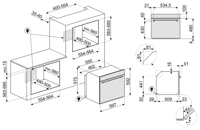 Режимы нагреванижний нагрев, верхний нагрев + нижний нагрев, конвекция, верхний нагрев + конвекция, нижний нагрев + конвекция, гриль + конвекция, большой гриль