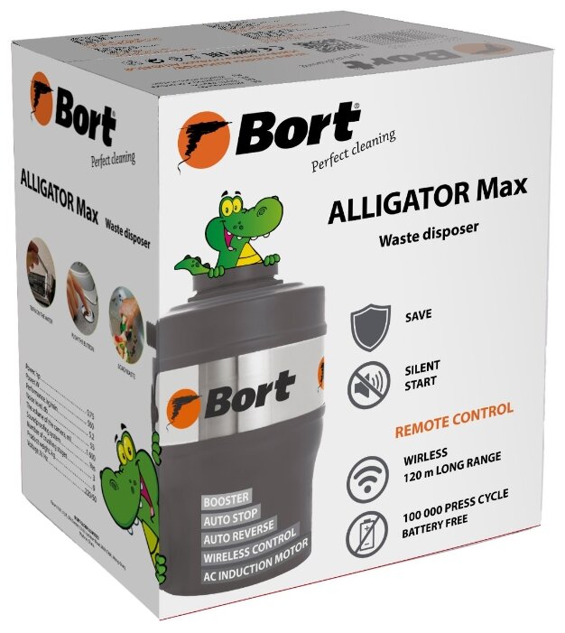 Камера и дробильный диск прибора Bort Alligator Max производятся из нержавеющей стали. Этот материал устойчив к износу, долговечен и не подвержен износу. Прибор действует с мощностью 560 Вт при скорости вращения 1680 об/мин. Рабочая камера вмещает 1600 мл. Комфортной эксплуатации способствует наличие полной звукоизоляции и ручного перезапуска для защиты механизма от перегрузок. Также предусматривается наличие системы автоматического реверса.