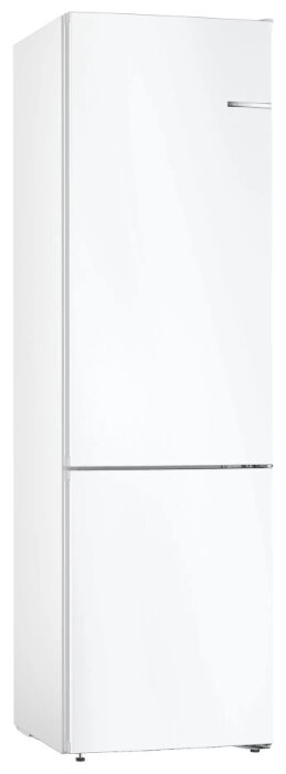 Холодильник BOSCH KGN39VW22R белого цвета обладает хорошей вместимостью и функциональностью. Морозильная камера холодильника замораживает продукты на достаточно большой мощности (15 кг/сут). А минимальная температура в ней может устанавливаться на уровне -24 °С. Компрессор холодильника работает довольно тихо (39 дБ) и потребляет мало электричества (класс А+). В холодильнике поддерживаются режимы «Суперзаморозка» и «Суперохлаждение». Их настройка, а также регулировка температуры в камерах, происходит при помощи внешнего сенсорного дисплея.