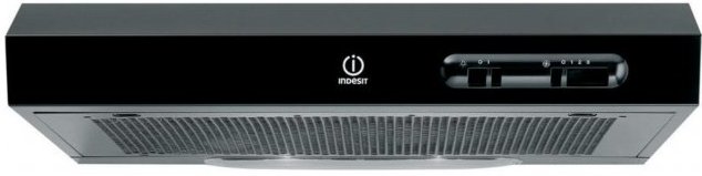 Вытяжка может работать в двух режимах: отвод и циркуляция. Также можно выбрать среди трех скоростей работы. Управление производится с помощью механических кнопок и рычага-слайдера, которые располагаются на передней стороне прибора. Дополнительное преимущество представленного устройства – наличие встроенной подсветки (2 лампочки на 40 Вт). Модель Indesit H161.2 (BK) имеет средние габариты (132х600х510 мм при весе 4,5 кг) и стильный черный цвет.