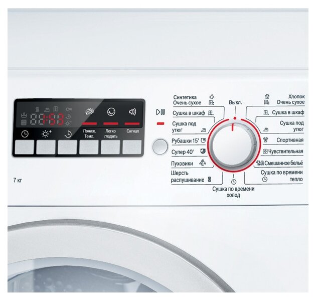 Сушильная машина Bosch WTB 86200 OE бережно высушит белье и одежду без повреждения ткани и появления складок. Выбрать программу поможет блок управления и яркий LED-дисплей, а предотвратить пересушку и вовремя закончить процесс поможет система DUO-Tronic, в своих действиях опирающаяся на показания датчиков температуры и влажности. В рабочий отсек загружается до 7 кг мокрого белья, а плавный режим вращения и уникальная форма барабана обеспечат равномерную сушку без слипания.