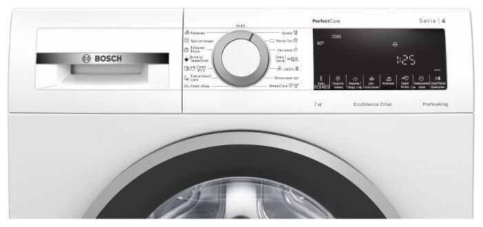 | Специальные программы | стирка деликатных тканей, экономичная стирка, предотвращение сминания, стирка джинсов, стирка пуховых вещей, программа стирки смешанных тканей, супер-полоскание, быстрая стирка, замачивание, предварительная стирка, стирка спортивной обуви |