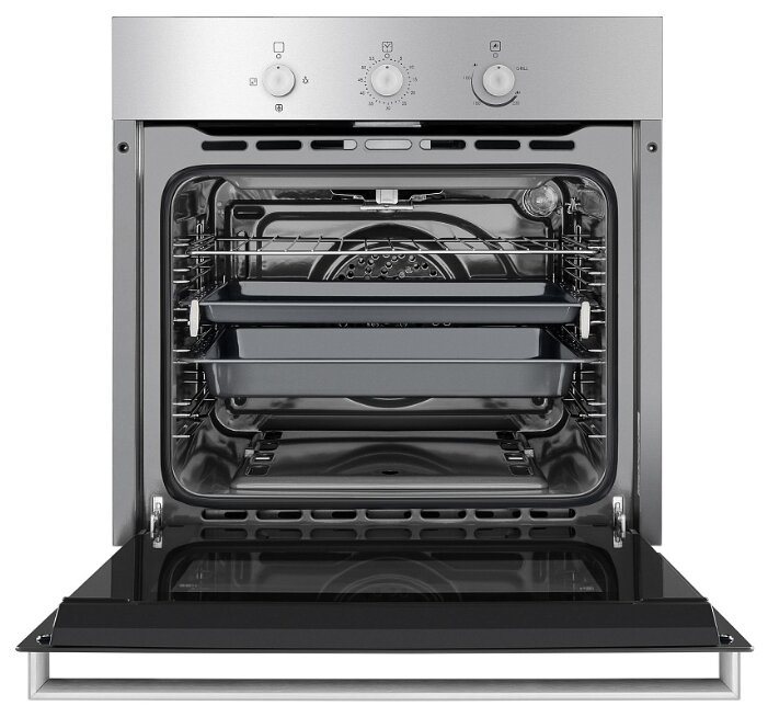 В газовом духовом шкафу MAUNFELD MGOG.673S предусмотрена конфекция и гриль мощностью 1800 Вт. Система газ-контроль обеспечивает автоматическое прекращение подачи газа в том случае, если пламя погасло по каким-либо причинам. За счет вентилятора охлаждения дверца духовки эффективно охлаждается, в результате чего не допускается нагрев элементов электроники устройства и окружающей кухонной мебели. Настраивать параметры работы духовки достаточно просто за счет поворотных переключателей. Модель оснащена телескопическими направляющими.