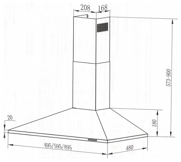 | Ширина вытяжки | 59.50 см |