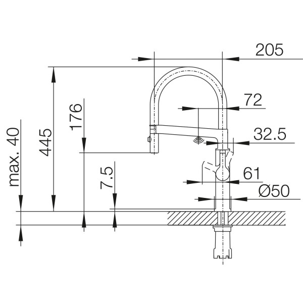 | Излив | длина 205 мм, высота 445 мм |