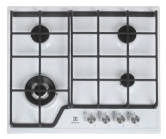 Газовая варочная поверхность Electrolux GRE363MW белого цвета представлена 4 конфорками разных размеров, одна из которых снабжена расширением типа «Двойная корона». Мощность горелок также различается и составляет 1, 2, 4 кВт. Чугунные решетки выдерживают посуду любого веса. Управлять газовой варочной поверхностью Electrolux GRE363MW можно при помощи встроенного электроподжига и поворотных механизмов. Опция газ-контроля стоит на страже безопасности эксплуатации прибора. Для подключения к электросети модель получила сетевой шнур длиной 1.1 м.
