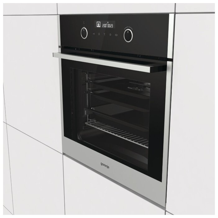 Электронная панель управления независимой духовкой Gorenje BO747A21XG позволяет быстро разобраться в настройке программ и не требует чрезмерных усилий. Смена температуры, режима осуществляется за счет поворотных переключателей, а также электронного сенсорного программатора. На встроенном дисплее вы всегда будете видеть необходимую информацию о работе оборудования.