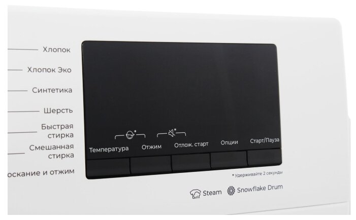 | Специальные программы | стирка деликатных тканей, стирка детской одежды, стирка спортивной одежды, стирка пуховых вещей, программа стирки смешанных тканей, супер-полоскание, быстрая стирка, предварительная стирка |