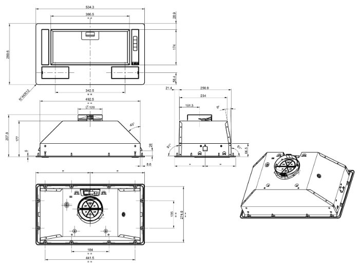 Имеет три режима, которые различаются пропускной способностью и уровнем шума. На первых ступенях устройство отличает тихая работа, что не создает дискомфорт во время нахождения на кухне, просмотров телевизора или беседе. Максимальная громкость не превышает 67 дБ.