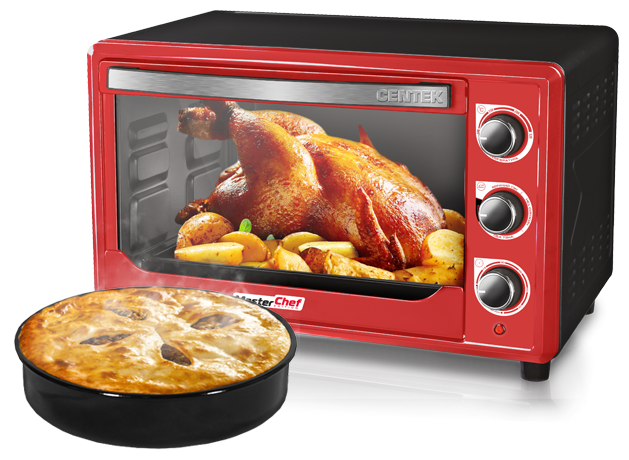 Яркий дизайн электропечи Centek CT-1538-50 привлекает к ней внимание. В ее оформлении сочетаются красные, черные и серебристые компоненты. Такая модель точно интегрируется в интерьер помещения.