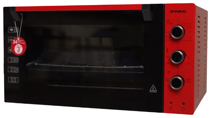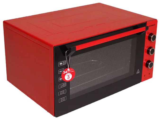 Электрическая печь SHIVAKI MD 4218 E red имеет достаточно компактные размеры, позволяющие разместить ее даже в небольшом кухонном помещении. Корпус устройства выполнен из высококачественной стали. Управление реализовано в виде простых поворотных ручек. Внутренняя поверхность печки покрыта эмалью. Несмотря на свой небольшой размер, печь имеет множество возможностей для приготовления ваших любимых блюд. Устройство имеет возможность двойного подогрева (одновременное включение 2 тэнов), благодаря которому тепло равномерно распределяется по всему объему печи, и блюдо пропекается со всех сторон. Печь имеет 3 режима нагрева (верхний нагрев, нижний нагрев, верхний и нижний нагрев), позволяющие подобрать наиболее подходящие настройки для приготовления того или иного блюда.