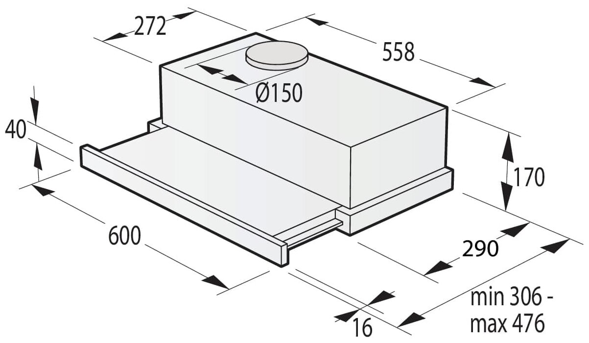 Вытяжка телескопическая Gorenje TH64E3SGB – функциональный кухонный прибор для обеспечения циркуляции воздуха и отвода посторонних запахов. Лаконичный дизайн металлического корпуса дополнен стеклянной вставкой и выдвижной панелью для увеличения глубины зоны обслуживания от 30.6 см до 47.6 см. Спереди прибор дополнен двумя LED-лампами для освещения рабочей области.