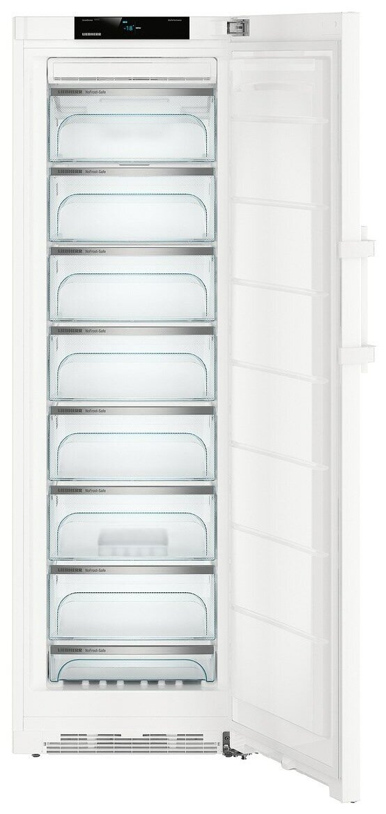 Благодаря климатическому классу SN-T холодильник может работать в диапазоне температур от +10 до +43°C. Для выбора лучшего места установки служит перенавешиваемая дверца. Уплотнитель на дверце легко снимается для очистки или замены. Система Vario с легким извлечением контейнеров и полок рассчитана на размещение в камере крупных продуктов и больших упаковок. Температура в камере может устанавливаться в диапазоне от −15°C до −28°C при помощи 2,4-дюймового сенсорного цветного TFT-дисплея. Панель управления располагается за дверью и недоступна для детей. Производительность замораживания достигает 18 кг продуктов в сутки. Автономное сохранение холода при отключении электроэнергии возможно на протяжении 20 часов. Система Frost Control позволяет зафиксировать максимальную температуру в камере после отключения электроэнергии: это необходимо, чтобы принять решение о дальнейшем сохранении продуктов. Функция суперзамораживания с автоматическим отключением поможет быстро снизить температуру, чтобы загрузить свежие продукты. Модуль SmartDevice Box для присоединения прибора к системе «Умный дом» и дистанционного управления приобретается отдельно.