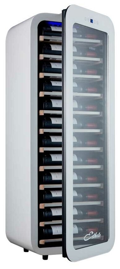 Шкаф для вина Libhof ES-34 - модель белого цвета с корпусом из стали. Имеет одну температурную зону и вмещает до 34 винных бутылок объемом 750 мл. Работа шкафа основана на компрессорном принципе. Благодаря низкому уровню шума и вибраций, сменному угольному фильтру и контролю влажности микроклимат внутри устройства остается максимально благоприятным для хранения вина. Деревянные полки установлены на телескопических направляющих, что обеспечивает хороший обзор и удобный доступ к бутылкам – даже к расположенным сзади. На стеклянной двери модели имеется специальный UV-фильтр, который защищает бутылки от губительных для вина солнечных лучей. Управление параметрами работы модели производится при помощи сенсорных кнопок и ЖК-дисплея с цифровой индикацией температуры.