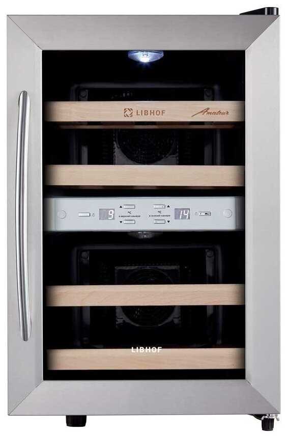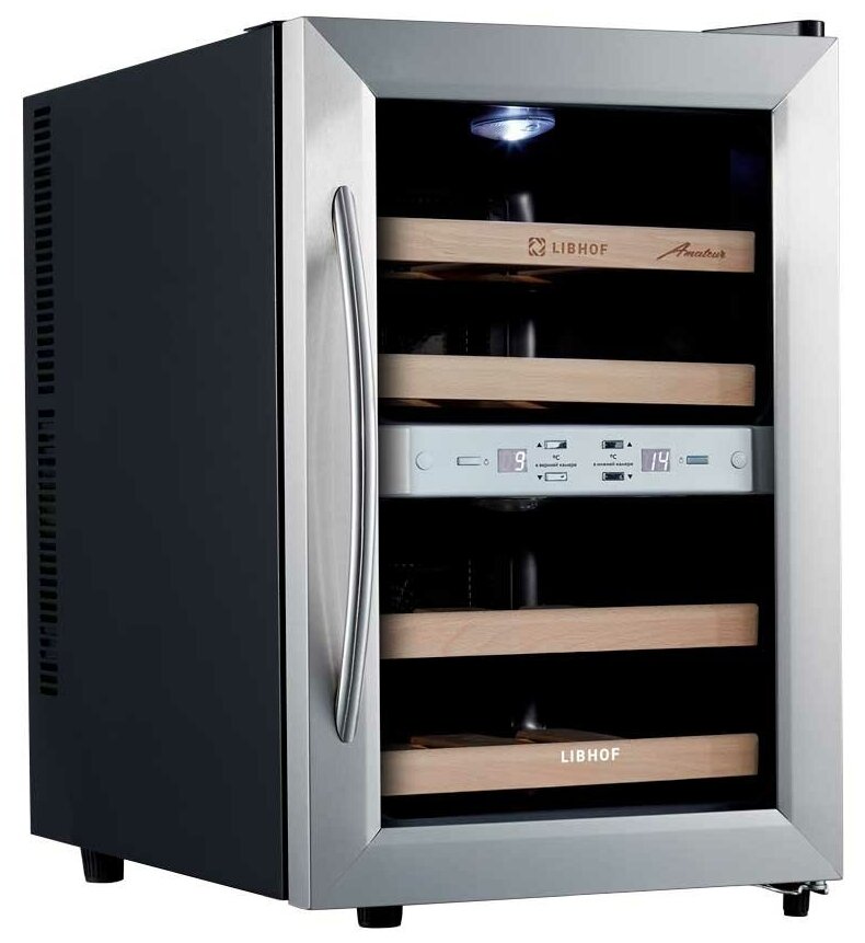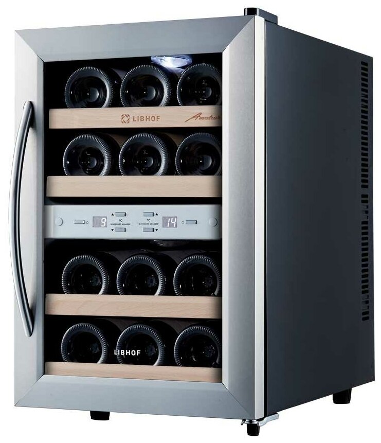 Шкаф для вина Libhof AFD-12 работает по термоэлектрическому принципу, который основан на использовании эффекта Пельтье. Основное преимущество данной модели – отсутствие губительных для бутылок с вином вибраций. Шкаф отлично подойдет для хранения белых и красных вин, требующих дозревания перед употреблением, а также уже готовых к сервировке. Благодаря наличию двух температурных зон шкаф отлично подойдет для хранения белых и красных вин, требующих дозревания перед употреблением, а также уже готовых к сервировке. Специальное покрытие на стеклянной двери защитит Ваши бутылки от солнечного света и, в частности, от УФ-излучения, которое может быстро нанести необратимый вред вину в результате окисления танинов. Полки из массива бука устойчивы к воздействию влаги. Удобная панель управления с дисплеем и цифровым термометром находится за стеклом: для контроля работы не нужно открывать дверцу. Модель имеет стильный дизайн и будет отлично смотреться в любом интерьере.