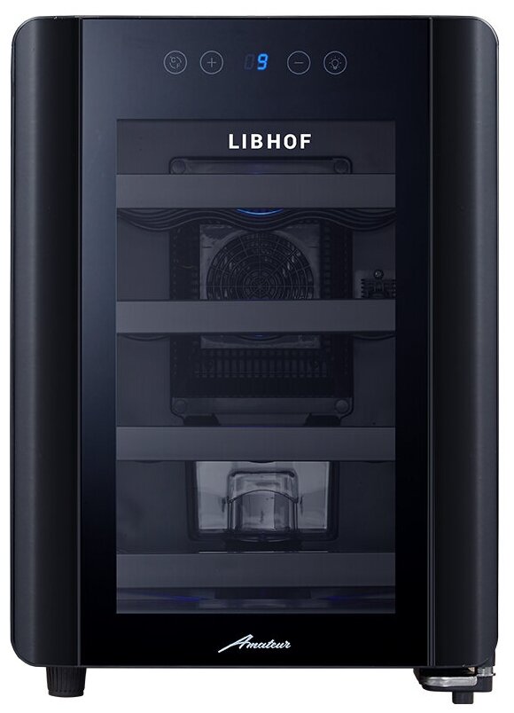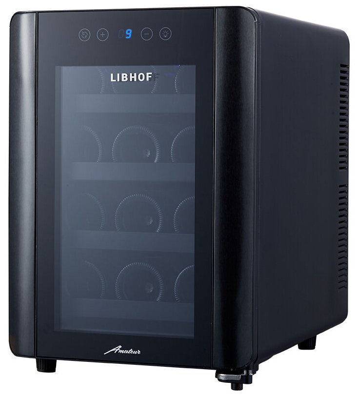 Монотемпературный шкаф для вина Libhof AX-12 работает по термоэлектрическому принципу, который основан на использовании эффекта Пельтье. Основное преимущество данной модели – отсутствие губительных для бутылок с вином вибраций. Шкаф отлично подойдет для хранения белых и красных вин, требующих дозревания перед употреблением, а также уже готовых к сервировке. Дверца в стальной раме оснащена стеклопакетом дымчатого оттенка с UV-фильтром, который отлично защищает алкоголь от ультрафиолетового излучения. 4 съемные металлические полки вмещают до 12 бутылок вина объемом 750 мл. Благодаря светодиодным лампам синего цвета обеспечивается красивая подсветка силуэтов винных бутылок. Электронный термостат с цифровым индикатором, расположенным на дверце шкафа, позволяет без труда следить за температурой внутри камеры. Модель имеет стильный современный дизайн и будет отлично смотреться в интерьере, выполненном в современном стиле.
