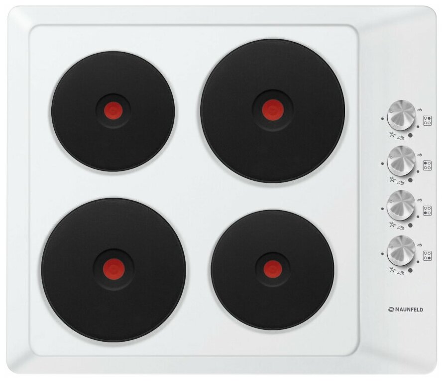 Оборудование MAUNFELD EEHE.64.4W подключается к электросети с помощью 3-жильного кабеля. На имеющиеся четыре конфорки можно ставить небольшие кастрюли или сковороды с диаметром дна от 14.5 см. Вы легко разберетесь в управлении простыми поворотными рычагами. Плита обладает размерами 59x51.5 см, а при встраивании требует соблюдение габаритов 56x48.5 см при высоте 5.1 см.