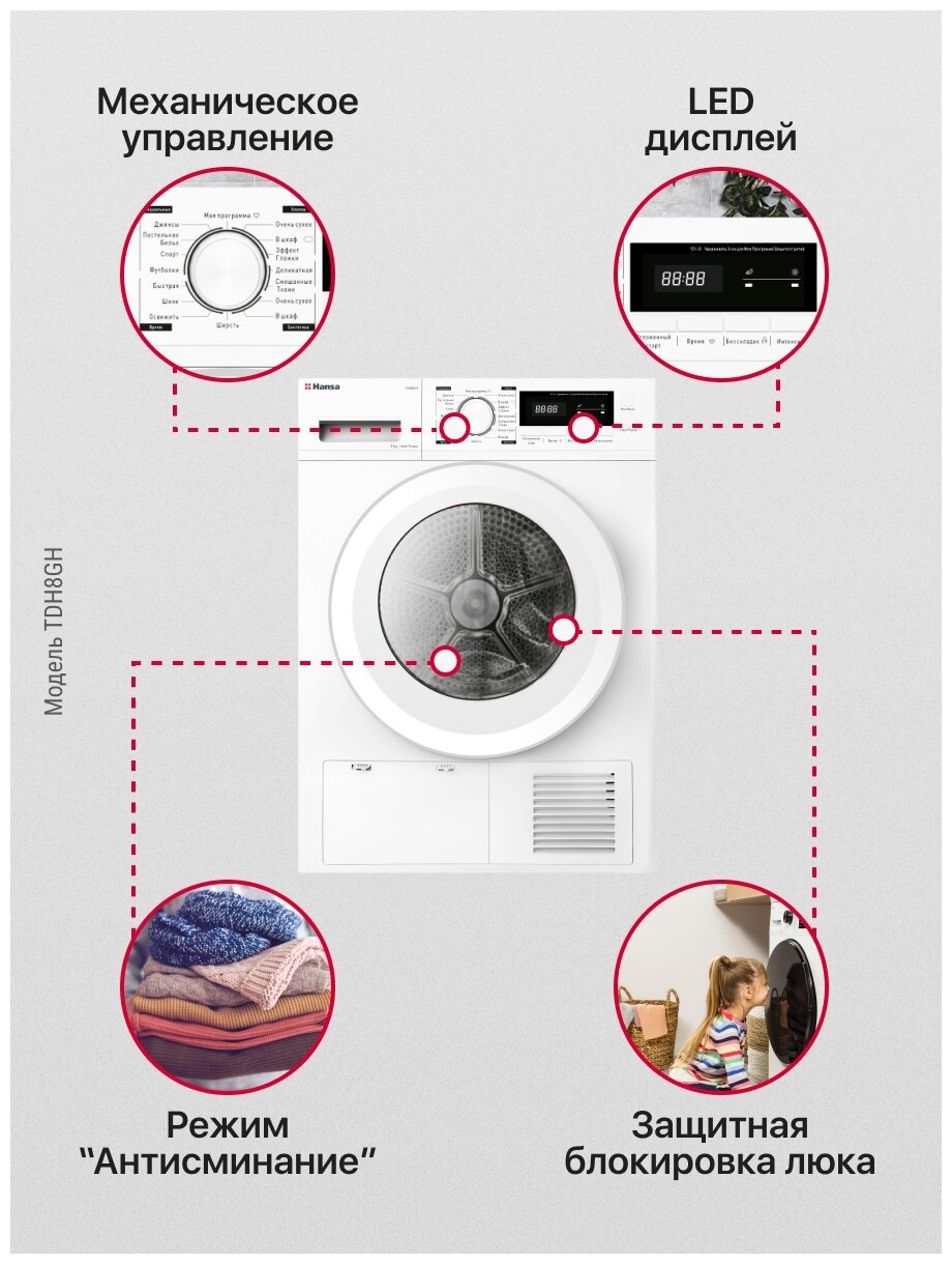 Машины с тепловым насосом просушивают вещи более деликатно. Температура прогретого воздуха крайне редко превышает 40 С, а значит вещи не подвергаются экстремальной термической обработке.