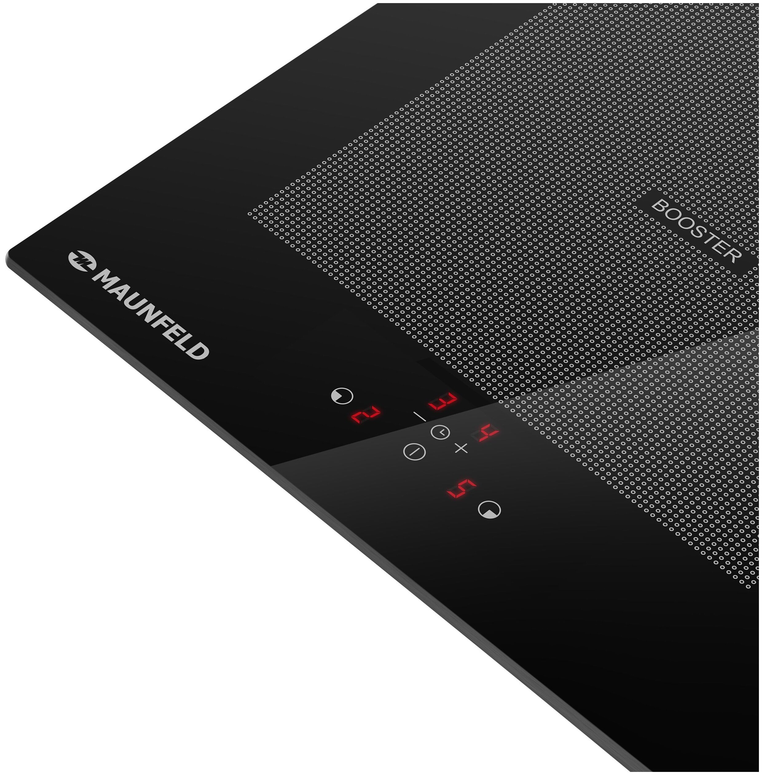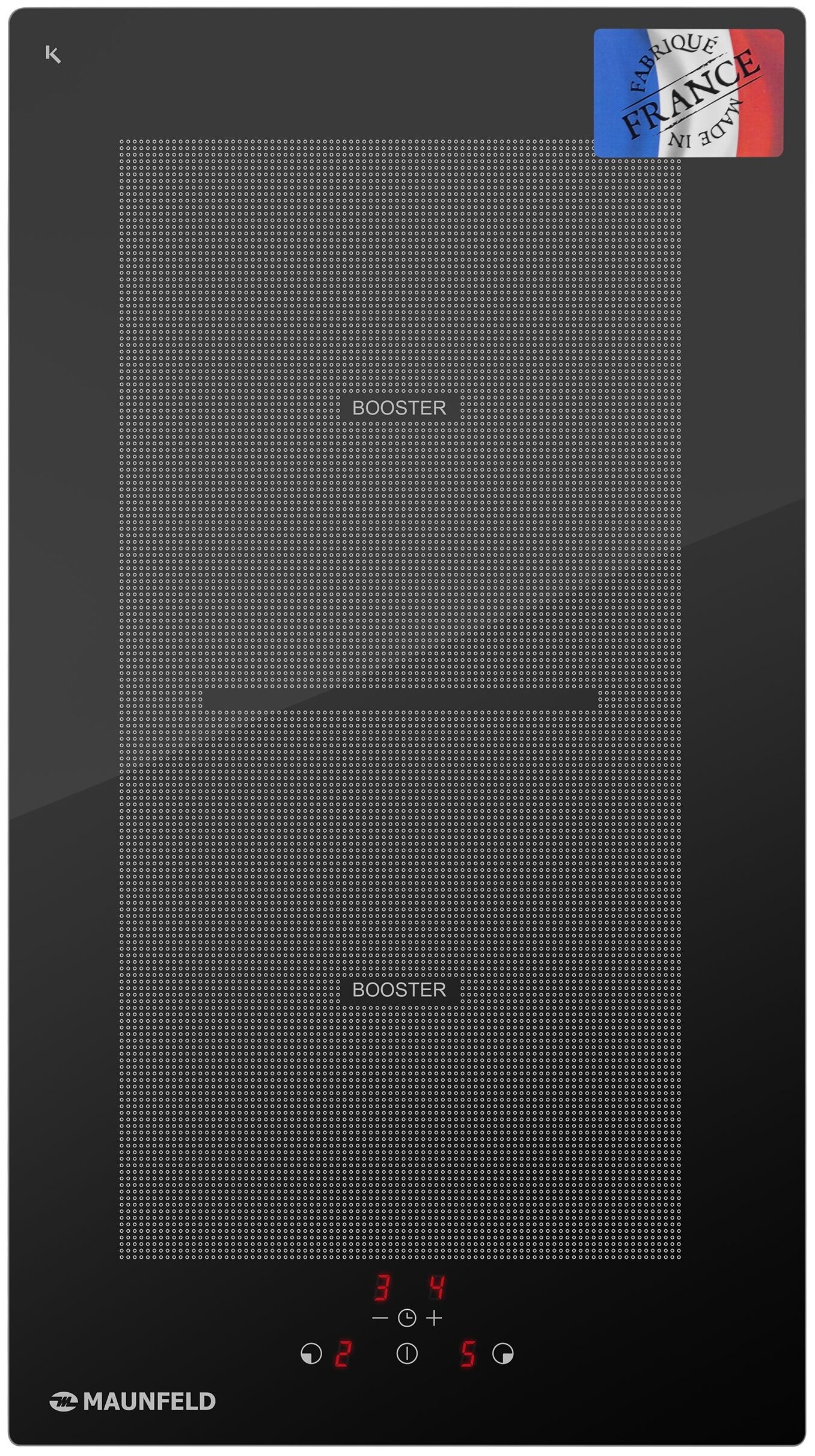 Индукционная варочная поверхность MAUNFELD выполнена из французской стеклокерамики EuroKera (Франция). Устройство оснащено двумя конфорками с бустером на 2000 Вт и Flex zone - увеличенной зоной нагрева для посуды любого размера. 9 уровней нагрева и таймер для каждой зоны помогут контролировать процесс приготовления. Блокировка всех элементов в случае мокрой поверхности, автоматическое отключение, защита от детей, индикатор остаточного тепла обеспечат полную безопасность использования. Автоматическая остановка по окончании времени приготовления. Каждая конфорка мощностью 1400 Вт (бустер до 2000 Вт).