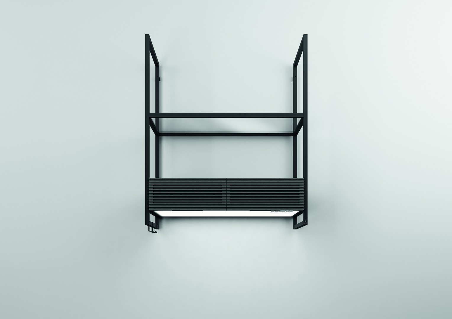 Вытяжка может ,при помощи аксессуаров, преображена в часть кухонного гарнитура и выполнять не только основную функцию но и быть одновременно зоной хранения и фокусной точкой в дизайне.