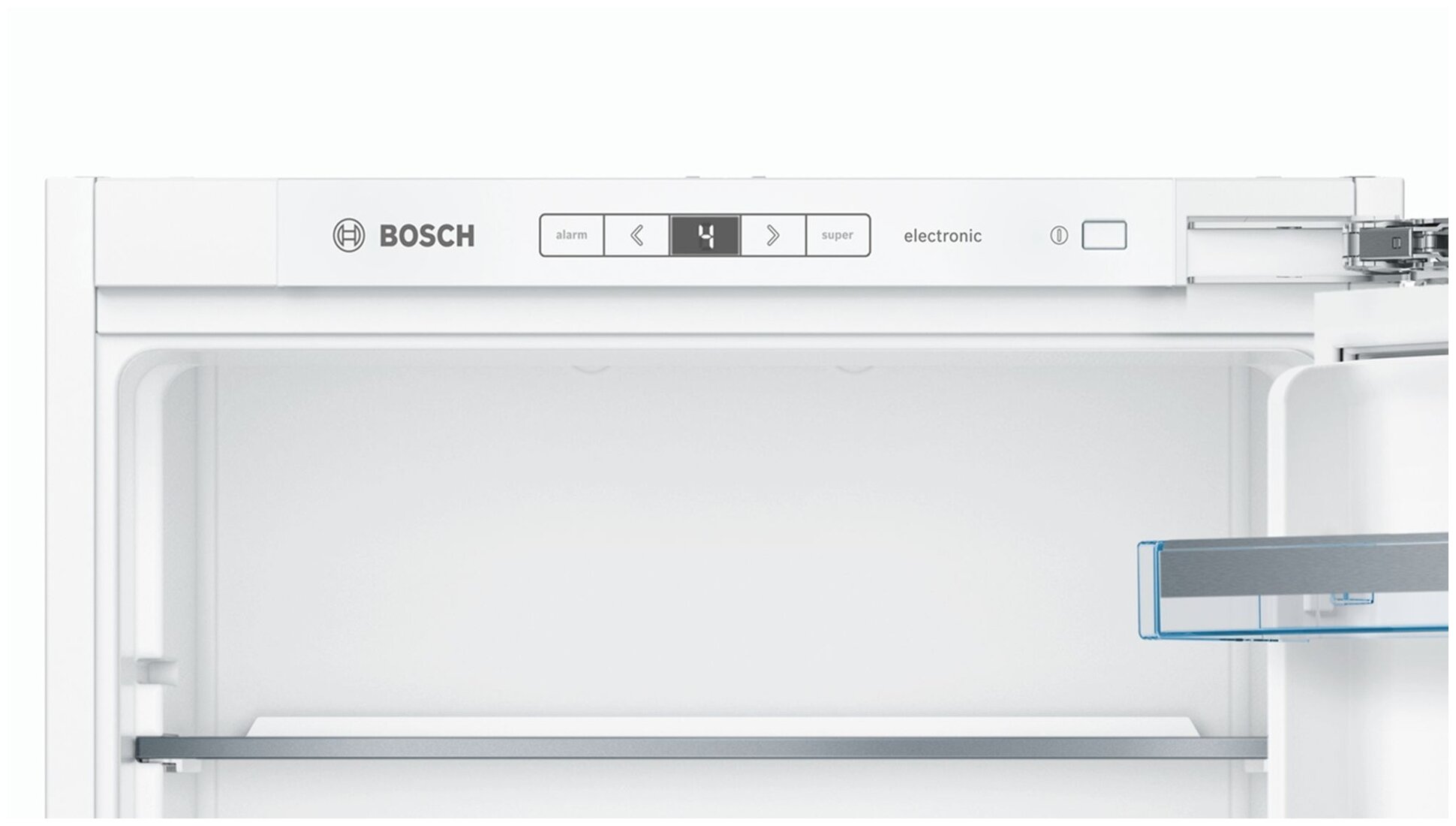 Встраиваемый холодильник Bosch KIN86VF20R имеет класс энергоэффективности А++, поэтому характеризуется низким потреблением электричества. Это способствует значительной экономии на оплате коммунальных услуг. Устройство оснащено инверторным двигателем, поэтому имеет высокую производительность. Специальный датчик FreshSense поддерживает оптимальную температуру в морозильной и холодильной камерах. Благодаря отделению BigBox можно сохранять крупные продукты или блюда в объемной посуде. Модель характеризуется тихой работой, уровень шума составляет 39 дБ.