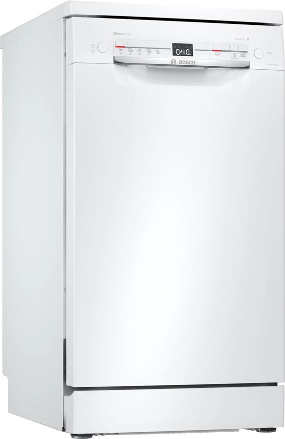 Узкая эффективная и долговечная посудомоечная машина Bosch Serie | 2 SPS2IKW4CRв стильном дизайне вмещает до 9 комплектов посуды, имеет электронный тип управления и текстовый дисплей для контроля работы.