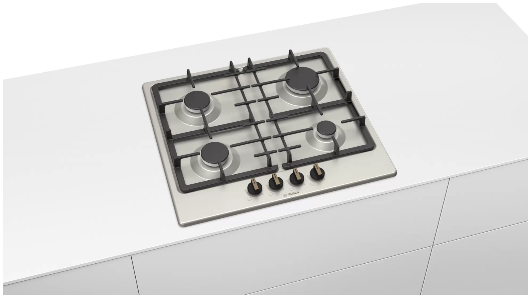 Bosch NeoKlassik Serie|4 PGP6B1B92R – газовая панель, предназначенная для независимого встраивания в столешницу кухонного гарнитура. На четырёх мощных конфорках вы сможете готовить несколько блюд одновременно.