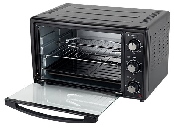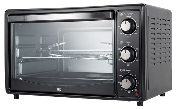 Прибор BQ EO3002BG дополнен вертелом и грилем для приготовления необычных блюд. Комфортной готовке способствует наличие подсветки камеры и рабочей индикации, термостата и кабеля длиной 90 см. Оборудование поставляется с противнем и решеткой со съемной ручкой, а также вертелом с рукояткой. Печь весит 6.56 кг и обладает размерами 48.7x29.9x38.8 см.