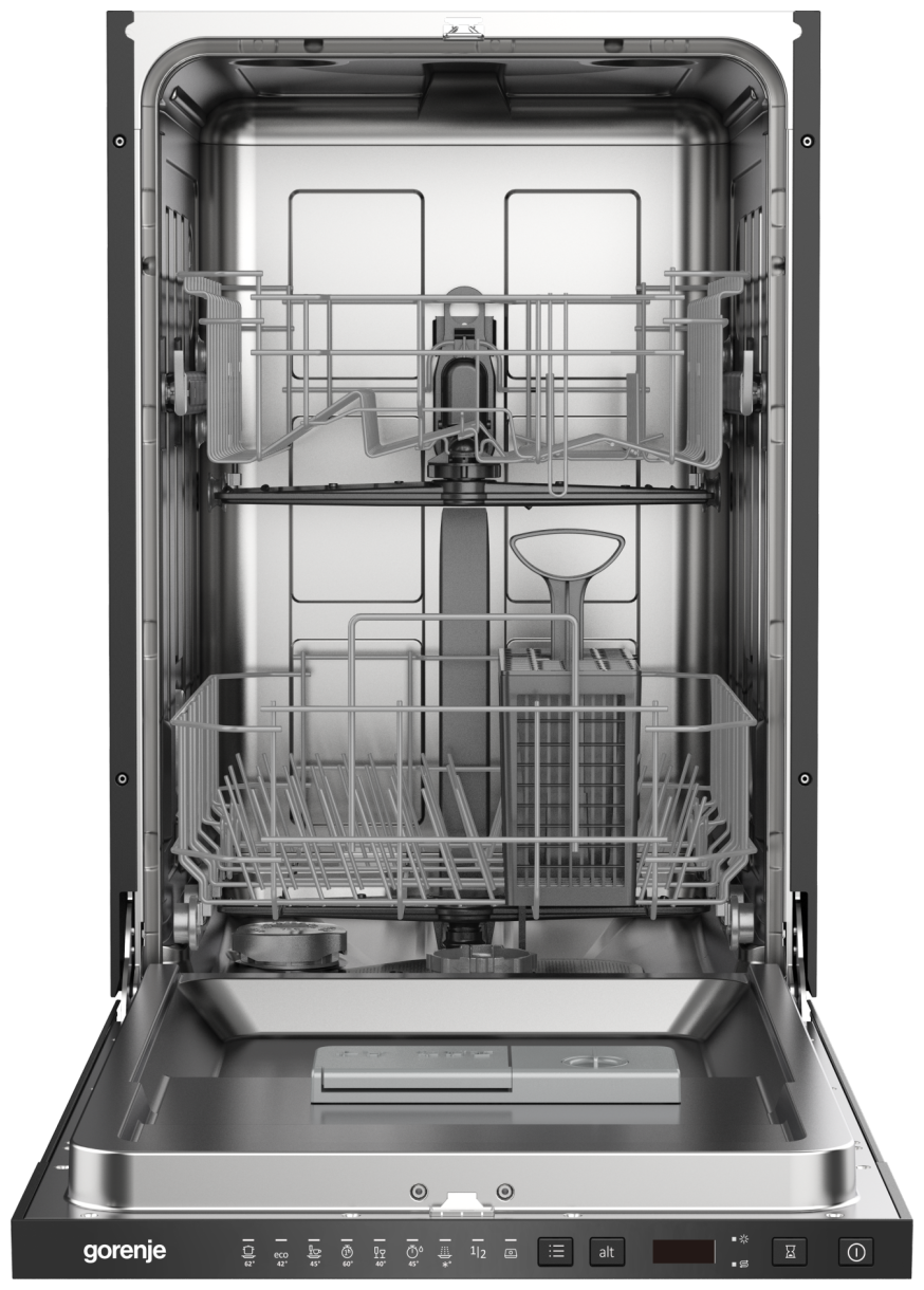 Встраиваемая посудомоечная машина Gorenje GV52041 станет вашим надежным помощником и обеспечит идеальную чистоту посуды при минимальных затратах воды и электроэнергии. Благодаря ширине всего 45 см она поместится на любой кухне, причем несмотря на столь скромные габариты вместимость ее вполне впечатляющая — 9 стандартных комплектов посуды. При этом верхняя корзина регулируется по высоте, что позволяет размещать внутри крупногабаритные предметы, а часть держателей для тарелок способна складываться, образуя ровное пространство, на которое можно установить кастрюлю или иную крупную емкость.