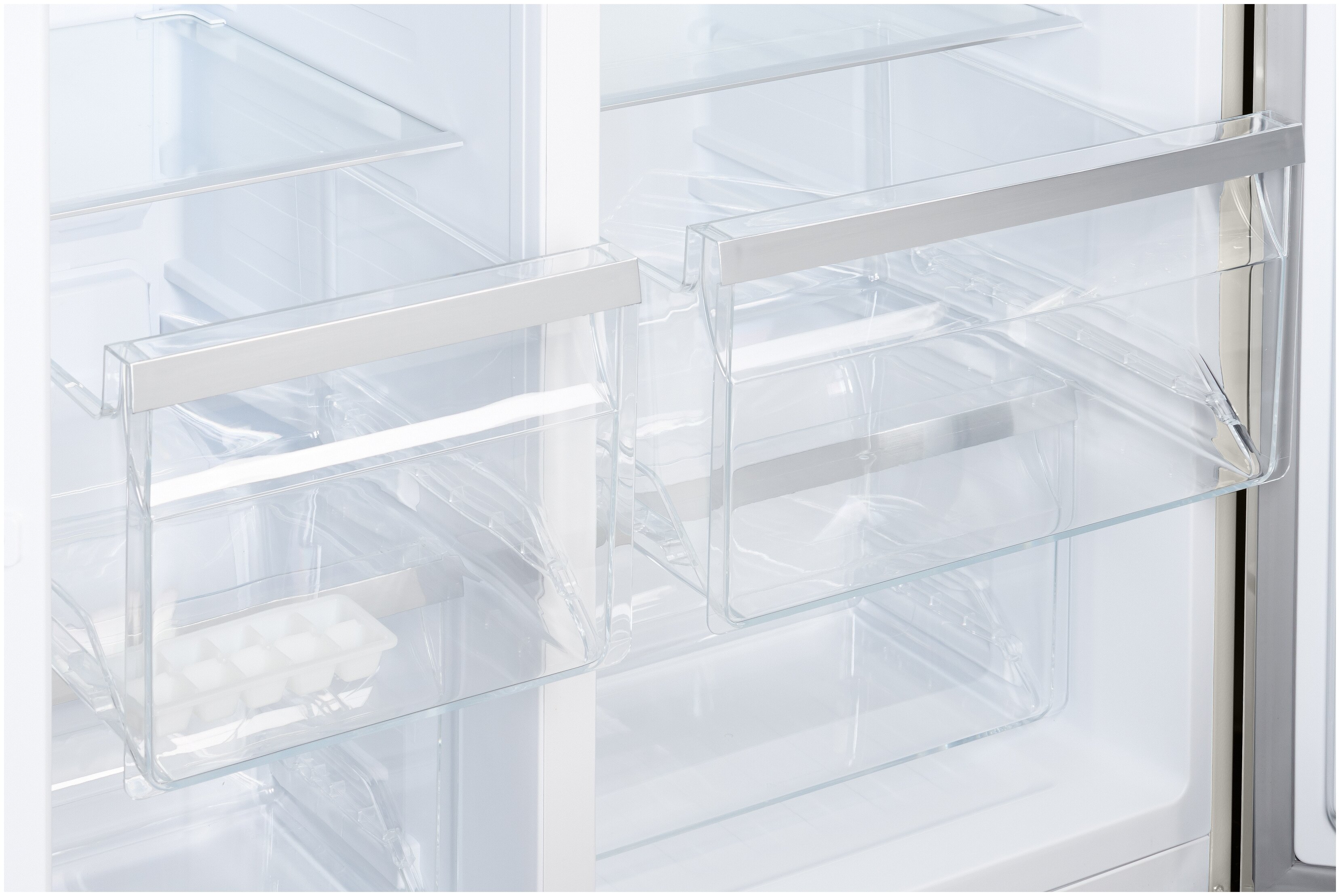 | Дополнительная информация | коллекция Hi-Tech, светодиодное освещение камеры, емкость для льда, полка для яиц (2шт.), отсек для овощей; морозильное отделение: выдвижные ящики (2шт.), дверные полки (3шт.); холодильное отделение: стеклянные полки (3шт.), навесные дверные полки (3шт.) |